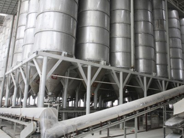 ③氣動(dòng)法:將壓縮空氣直接噴射在粉末物料內(nèi)部(不適用于易燃物料),或在斗壁內(nèi)裝設(shè)氣囊使氣囊間歇鼓脹收縮,對(duì)粉末物料產(chǎn)生橫向推力,消除料拱。由于物料特性以及料層厚度、壓實(shí)度和存放時(shí)間等因素多變,外力破拱措施的效果并不穩(wěn)定,應(yīng)與防拱措施結(jié)合采用。對(duì)于大塊礦石產(chǎn)生的機(jī)械性卡咬起拱,可采用小型雷管伸入卸料口爆振,使料拱崩塌,但須采取安全防護(hù)措施。